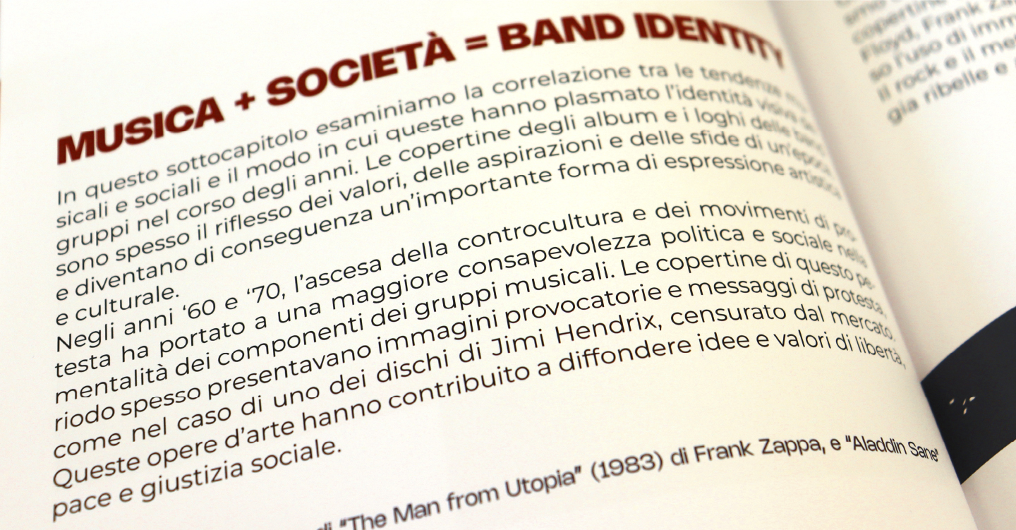Attraverso studio e ricerca in tutto il campo trattato, si è sviluppato un tone of voice e un’estetica inedita, per sintetizzare e raccontare la comunicazione visiva del genere musicale in questione, la sua influenza nella società ed evoluzione nel tempo. Uno stile di impaginazione dinamico e sperimentale ha contribuito a dare risalto alle opere artistiche e di design con cui il libro accompagna il lettore.
