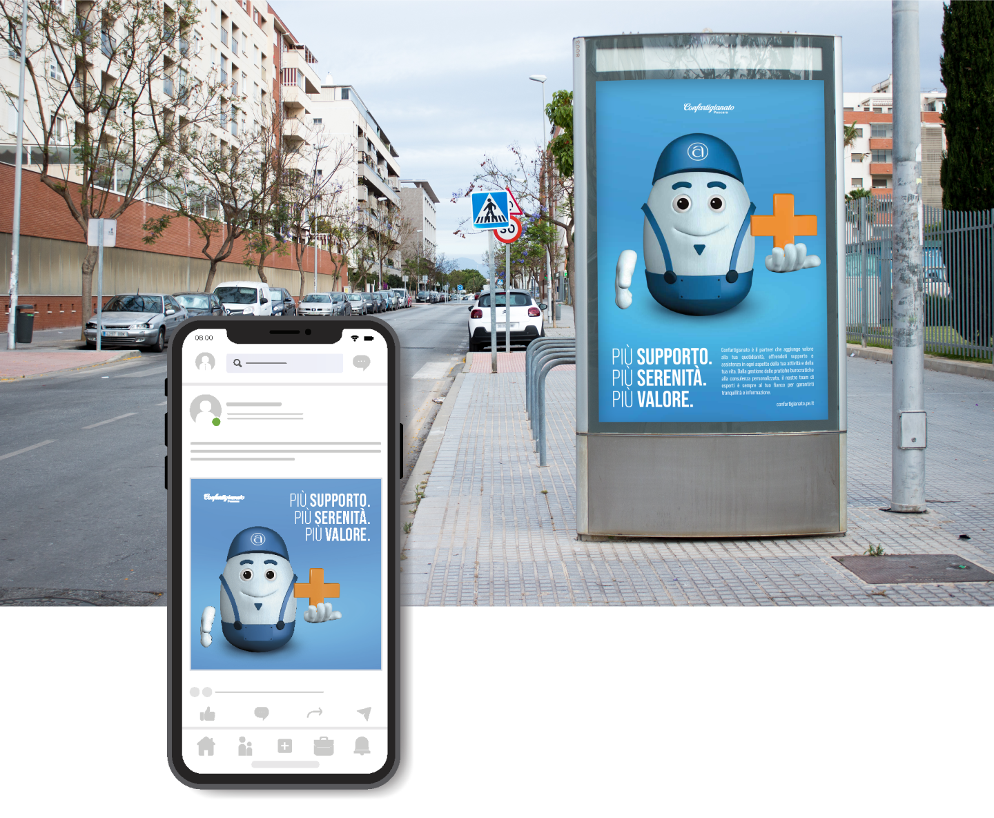 L’ADV e la mascotte vogliono sottolineare l’importante ruolo di Confartigianato nell’aiutare Persone, Imprese e la terza età, nella gestione della loro vita lavorativa e non, trasmettendo un’immagine amichevole, di partnership, affiancamento e affidabilità.